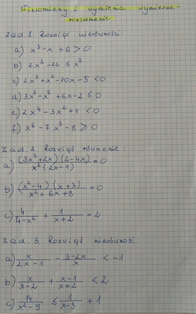 Wielomiany i wyrażenia wymierne – rozszerzenie