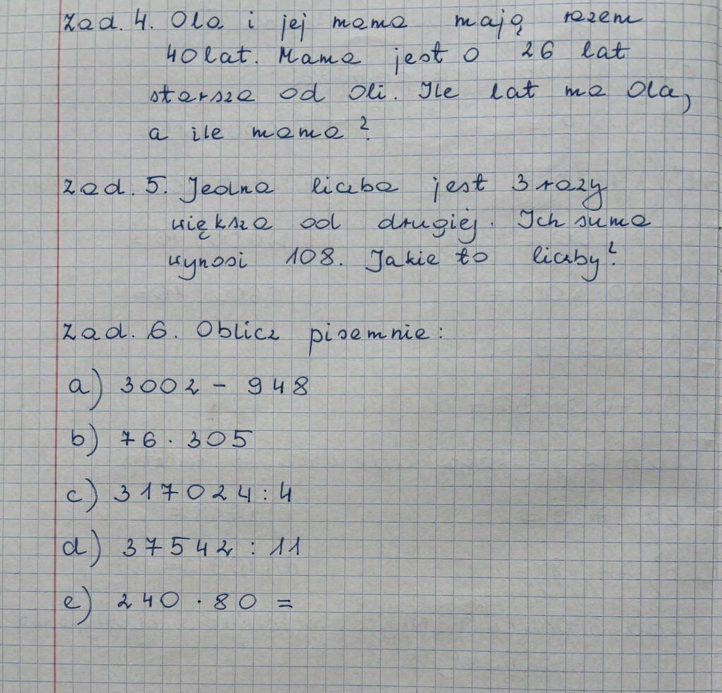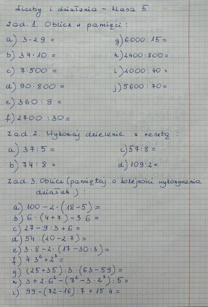 Liczby i działania – klasa 5